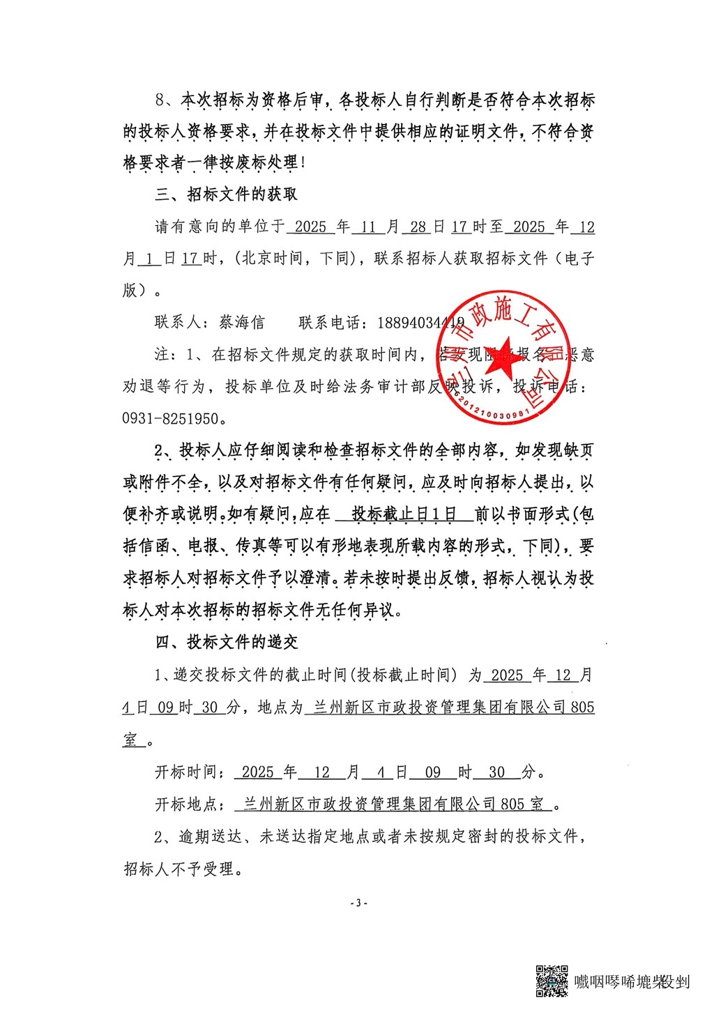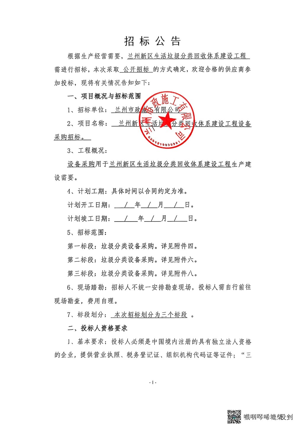 蘭州市政施工有限公司蘭州新區(qū)生活垃圾分類回收體系建設(shè)工程設(shè)備采購招標公告