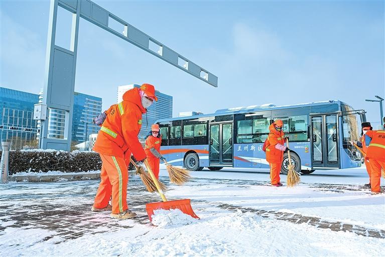 蘭州新區(qū)市政集團(tuán)第一時間組織清潔工開展清雪除冰工作