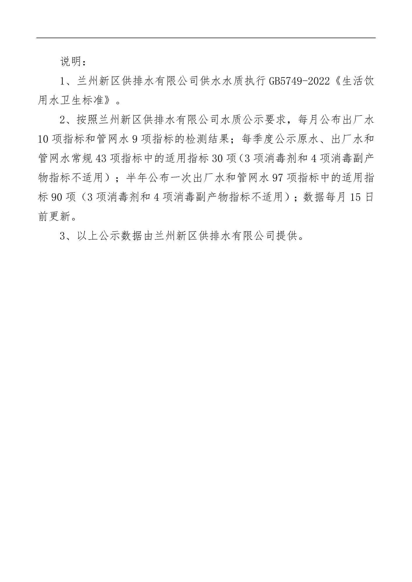 (2025年8月)蘭州新區(qū)供排水有限公司供水水質公示